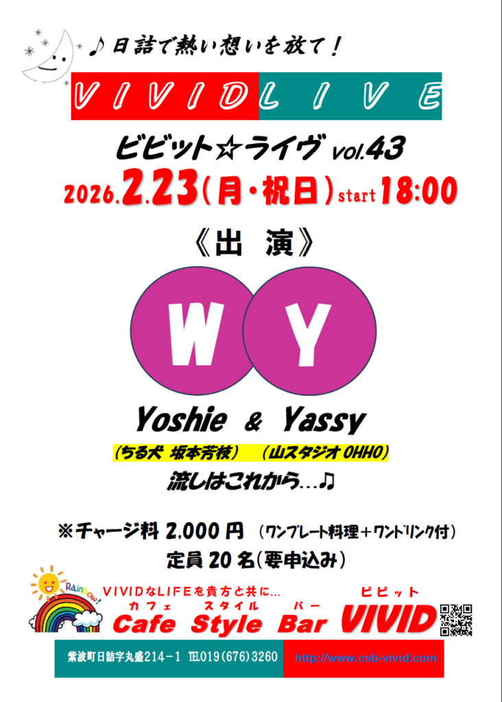 久々に開催となりますビビット☆ライヴは今回で43回目を迎えます。