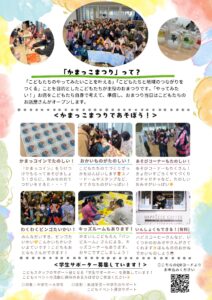 子ども達が主体で作られているお祭りなので、温かい気持ちで見守っていただきつつ、ご参加いただければ嬉しいです!