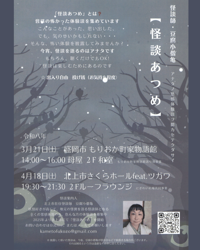 【怪談案内人】北上市在住 怪談師 豆腐小僧亀