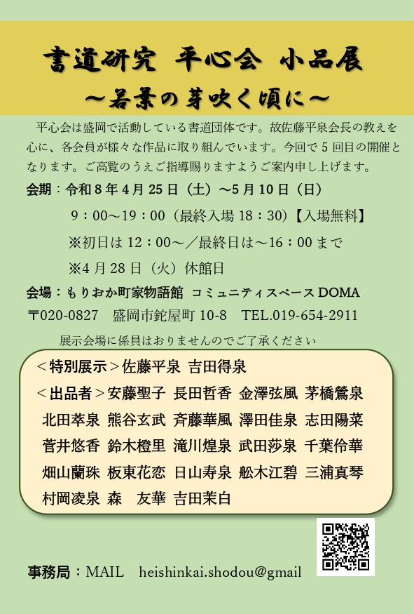 3. 【DOMA展示】書道研究 平心会 小品展 ~若葉の芽吹く頃に~