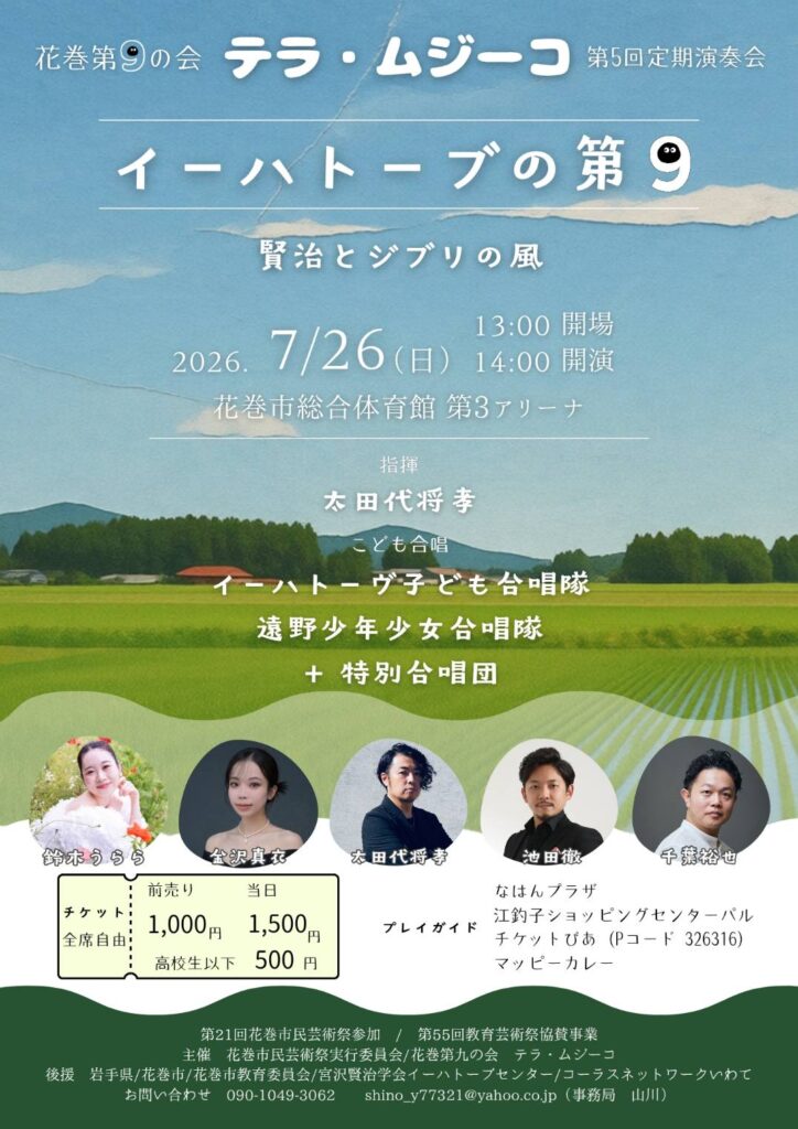 花巻第九の会 テラ・ムジーコ 第5回定期演奏会「イーハートーブの第九」〜賢治とジブリの風〜
